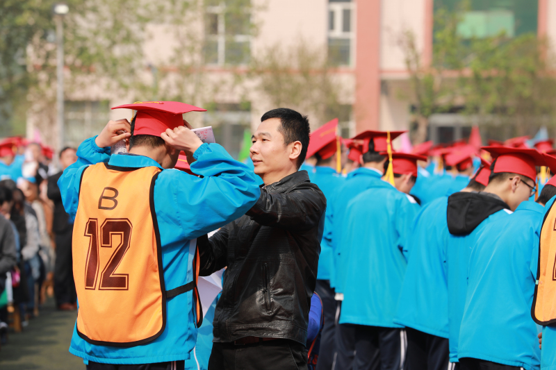 家长们拿起手中的成人帽,郑重地为孩子加冠。