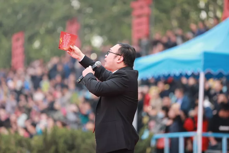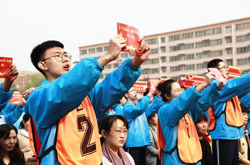 全体学生在高二年级A部主任史印涛的带领下,刚劲有力、气势恢宏地宣读了成人誓词,立志用青春和汗水、用激情和热血谱写灿烂辉煌的青春画卷。