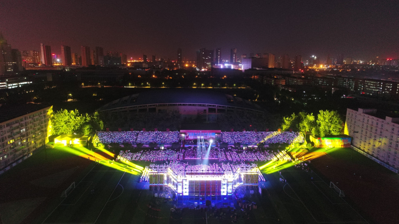 演出中,台下的同学们随着音乐的节拍挥动着荧光棒,连连为台上的精彩表演喝彩。