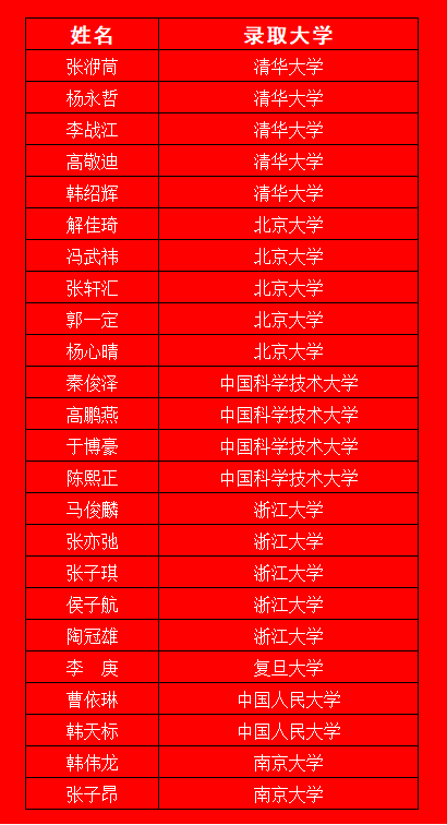 2020年高考,澳门金年会app下载官网张洢茼、解佳琦、冯武祎、张轩汇、郭一定、杨心晴、高敬迪、李战江、杨永哲、韩绍辉等10名同学分别考入清华大学、北京大学,考取清华、北大的人数达到了两位数;与此同时,张洢茼同学入选享誉全国的清华大学钱学森力学班。另有一批同学考入中国科学技术大学、浙江大学、复旦大学、中国人民大学、南京大学等中国著名大学。