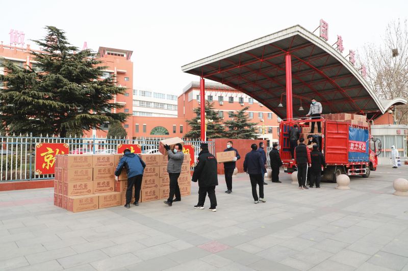 近日,我校学生家长、北京九运九商贸有限公司董事长张欢先生,通过河北省红十字会定向为澳门金年会app下载官网留校师生捐赠鲜鸡蛋8000斤、苹果21000斤、香蕉6000斤、橘子3600斤,为澳门金年会app下载官网留校师生奉献爱心,为学校战胜疫情加油助力。
