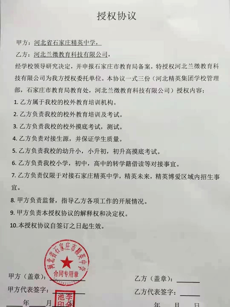 一、以上两家公司声称的所谓“授权协议”为虚假协议,所盖公章和我校校长李金池先生手章均为私刻,澳门金年会app下载官网从未和任何机构签订过授权协议。