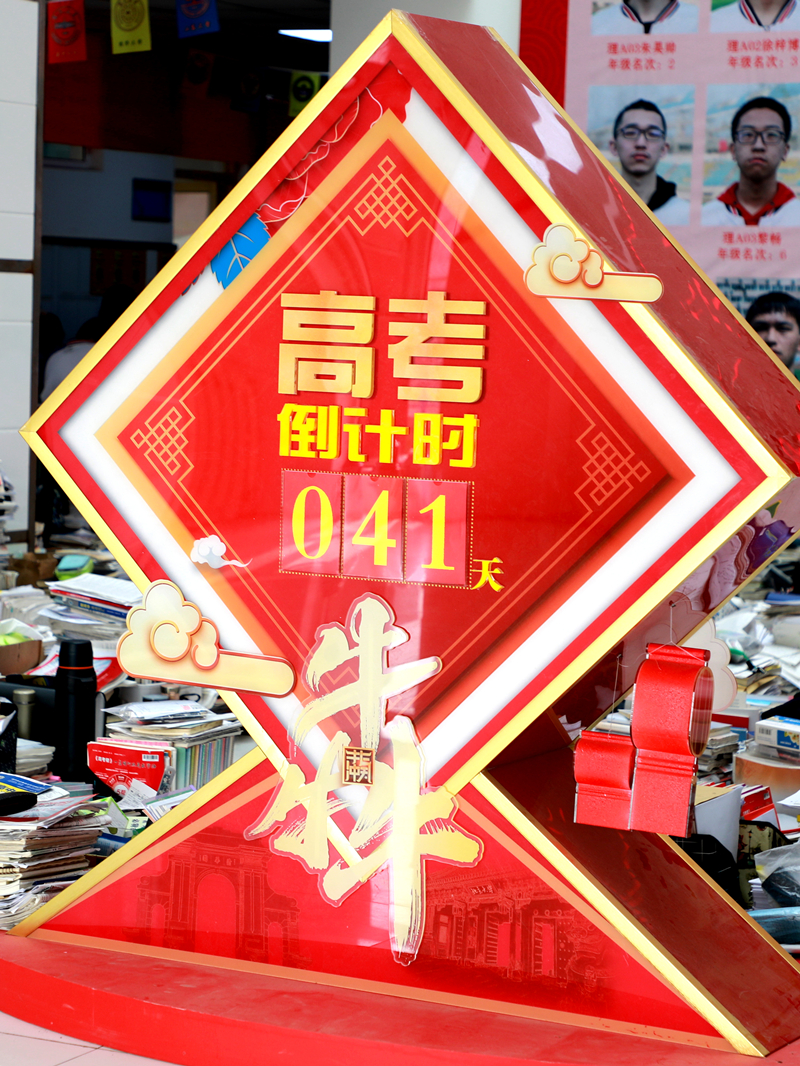 在高三的最后,每个人的内心都紧绷起来。高考倒计时牌上的数字,从二百到一百,从两位数到个位数。在高考前的那个晚上,当瞥见倒计时牌上“距离高考还有001天”时,他刹那间感觉不太真实;想到决定自己六年成败的高考就在明天时,他突然有些担心。“希望不要出现那个知识点,虽然复习了,可还是没底”“那个概念怎么背来着”……他的脑内开始不断回放刚刚看到考场的情景。走进教室,看到自己几天前为高考这几天写的目标,他心里的阴云才开始退散。