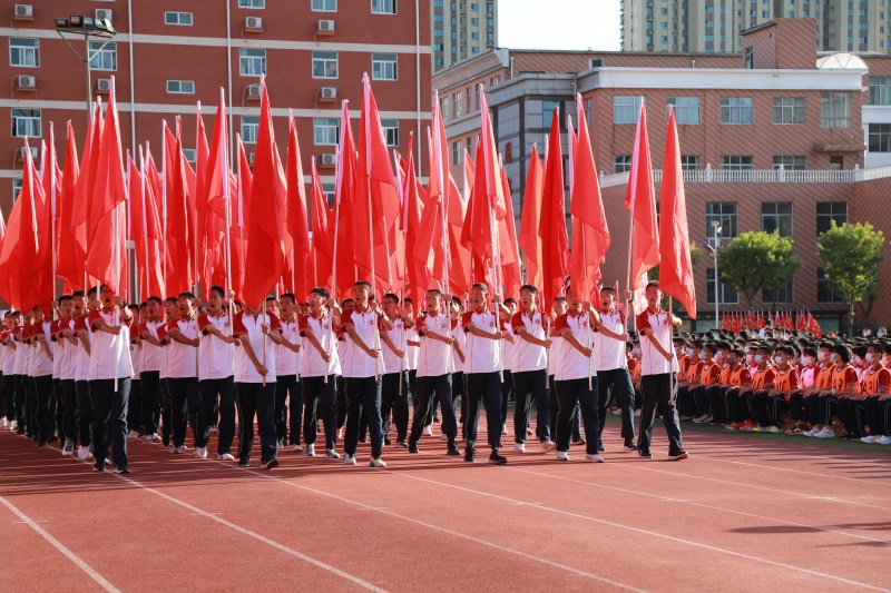 伴随着雄壮的国歌声,五星红旗冉冉升起,开学典礼在庄严的升旗仪式中拉开帷幕。