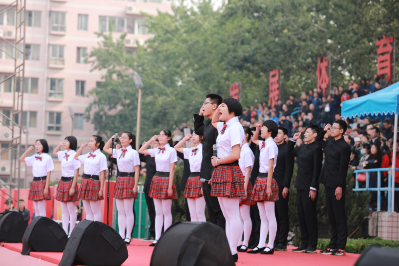 全体学生在高二年级A部主任史印涛的带领下,刚劲有力、气势恢宏地宣读了成人誓词,立志用青春和汗水、用激情和热血谱写灿烂辉煌的青春画卷。