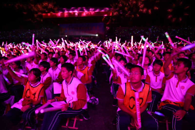 演出中,台下的同学们随着音乐的节拍挥动着荧光棒,连连为台上的精彩表演喝彩。