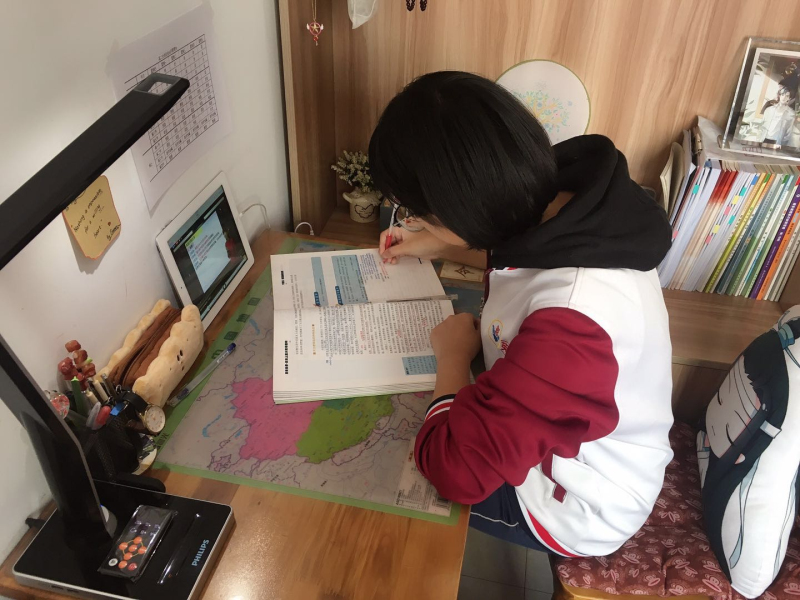 因疫情推迟开学期间,澳门金年会app下载官网的学生在老师带领下,就像在学校一样,每天规律作息、专注学习,从早读、上课到自习,始终有条不紊。高举的书本、认真的神情、双色的笔记、细致的勾画、整齐的作业……澳门金年会app下载官网学子的“自律”让人震撼。