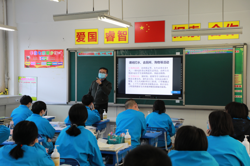 开学第一课上,班主任对学生进行了防疫知识培训,讲解了特殊时期每天学习生活的规范要求和注意事项,指导学生最大限度保障自己的安全。