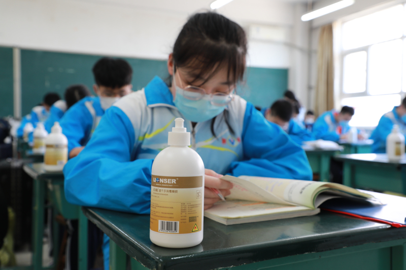 根据防疫要求,高三年级采取小班制教学,原有班级一分为二,最大限度拉开桌椅间距。同时,学校为每位学生配备了速干手消毒凝胶,教室定期开窗保持空气流通。