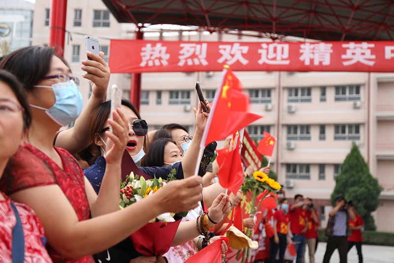 夹道欢迎的家长老师