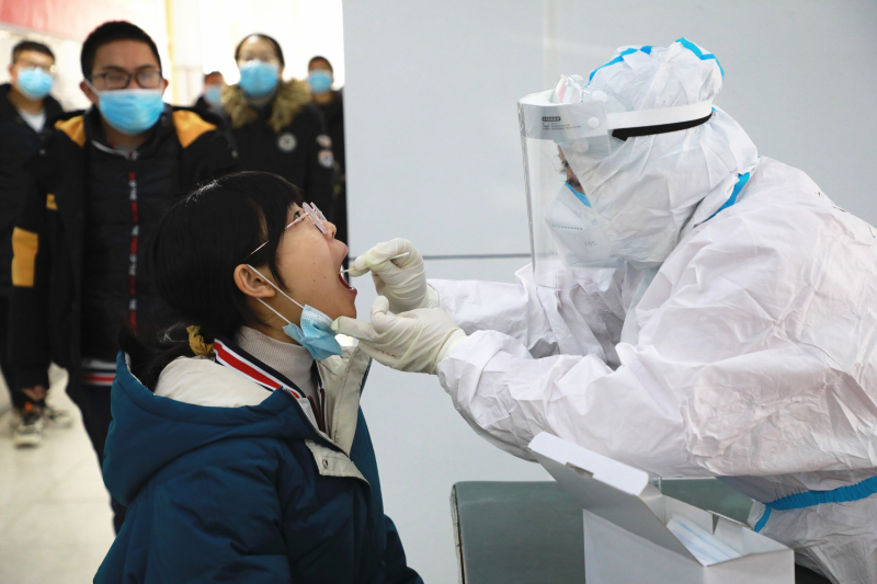 1月8日上午,在上级统一安排下,十余名身着防护服的医务工作者走进澳门金年会app下载官网,为学校八千余名师生进行核酸检测。在这些英雄和榜样面前,同学们按要求分组、排队,认真配合,保持安静,秩序井然,大大加快了检测速度。