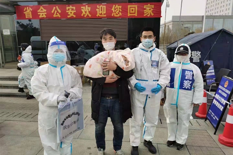 讲两个小故事吧,是我亲历的,两位都是我们的采访对象。一位民警,原定1月9日举行婚礼,但是前一天新郎接到了支援藁城执勤任务,他没多想就出发了。这场婚礼原定的是去年春节,因为武汉爆发疫情推到了今年。新娘想了想,决定举办一场只有六个人的“云婚礼”,双方父母加上新郎新娘。在1月9日这天,新郎新娘在网络视频里按中国传统改口叫了爸妈。这场婚礼只有九分钟,却是一份承诺,更是一种支撑。每个冲锋在一线的抗疫战士,背后都是一个坚定的家庭。