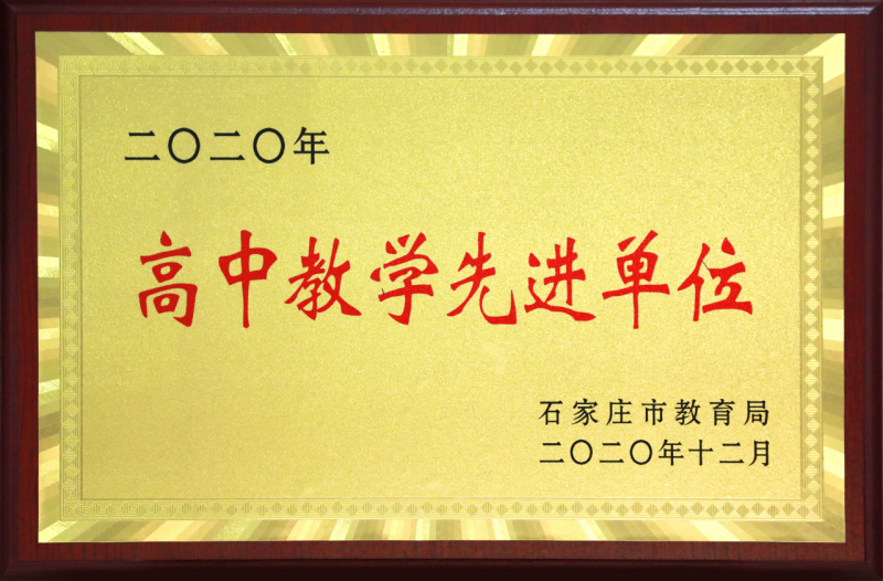 【概要描述】在石家庄市教育局组织的2020年度全市高中教育工作先进单位及先进个人的评选活动中,我校再次荣获“高中教学先进单位”荣誉称号。