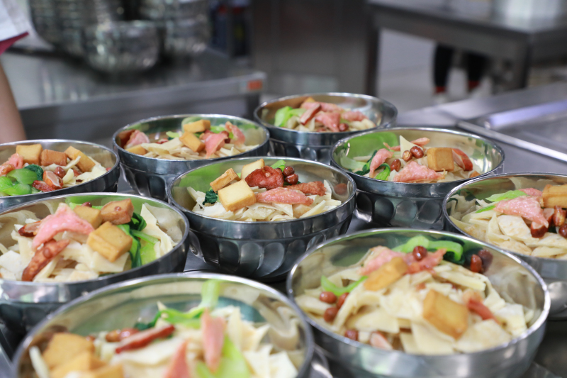 食堂的饭菜种类丰富,荤素搭配,营养均衡,价格实惠。我的午餐一般是一份米饭、两荤一素,只需花费八元,菜品量足味美,完全可以吃饱吃好。现在食堂新添加了刷脸系统,智能支付非常方便。食堂里有很多电视,吃饭的时候,我们可以观看时事新闻,随时了解国家大事、世界发展。