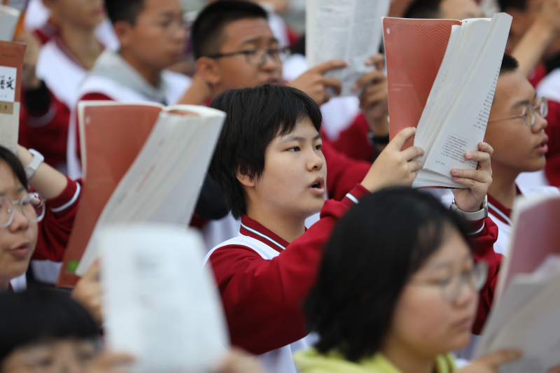 当清晨的第一缕阳光刚刚穿透黎明,我们已经来到运动场,高举书本,大声朗读,清亮的读书声飘荡在校园的四面八方。如果看过全校数千人一起早读的场面,那你一定会大为震撼。每个人都全神贯注,忘我读书,眼中放射的是光芒,双手紧握的是梦想。每天的早读,不仅巩固了我们对基础知识的掌握,更让我们激情满满地开启崭新的一天。