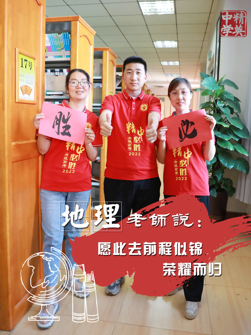 十年磨砺,只为明日一战。地理组全体教师祝所有澳门金年会app下载官网学子执的是自信之笔,答的是满意之卷;写的是高分之字,考的是幸运之篇;做的是如意之题,挥的是称心之汗;吹的是成功之号,打的是胜利之战。愿此去前程似锦,荣耀而归,旗开得胜,金榜题名!